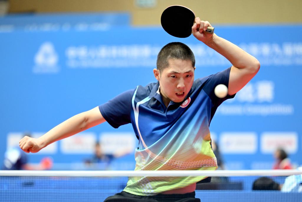 12月6日,陜西隊選手王瑜在男子單打30歲及以上組比賽中。當(dāng)日,全國第十二屆殘疾人運(yùn)動會暨第九屆特殊奧林匹克運(yùn)動會特奧乒乓球項目首日比賽在香港舉行。新華社發(fā)(胡瀟 攝)